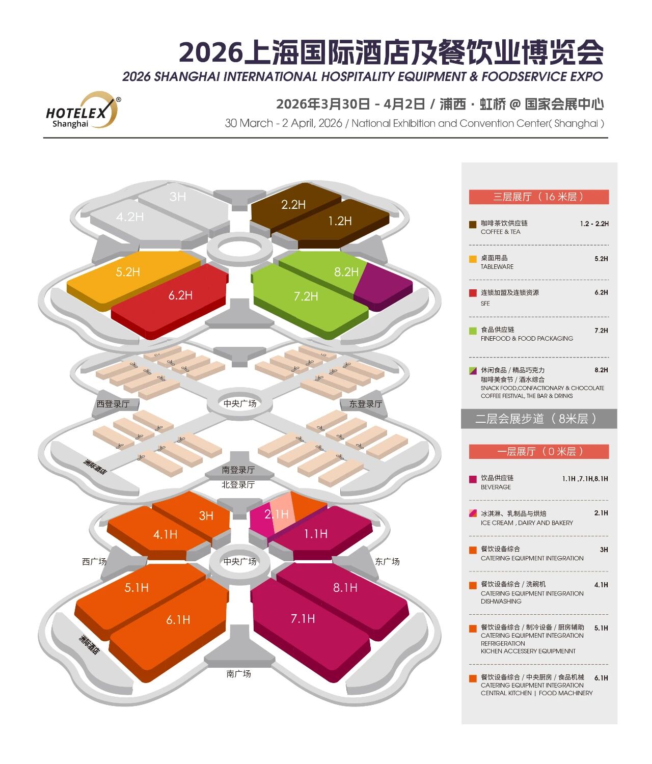 第三十四届HOTELEX上海国际酒店及餐饮业博览会,将于2026年3月30日—4月2日在上海浦西·虹桥@国家会展中心盛大举办!涵盖餐饮设备、桌面用品、食品饮料、咖啡茶饮、烘焙冰淇淋、轻餐美酒、食品机械、食品餐饮包装及机械、连锁加盟等热门板块,为全球酒店及餐饮业从业者创造一个更为开放和高效的交流空间。