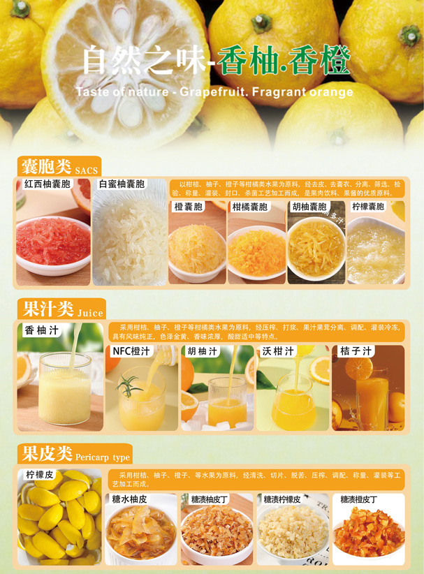 关 键 词:草香园 金明生物科技 香柚 香橙 果粒 果汁 果皮 果浆